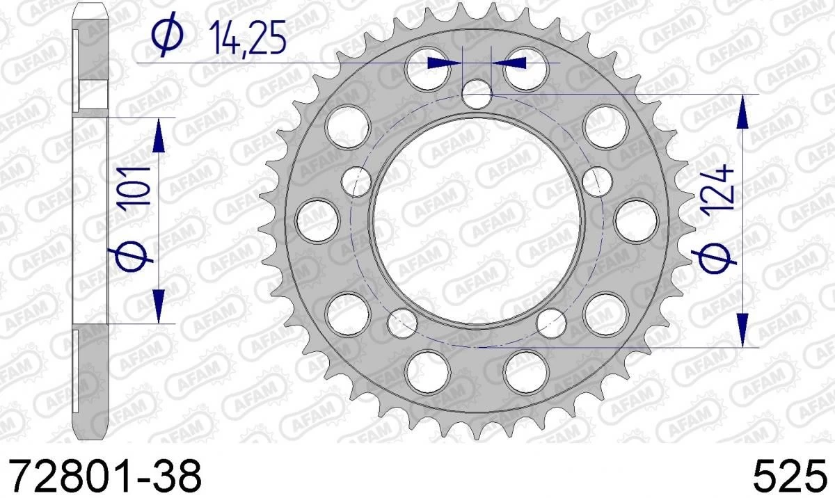 AFAM Tandwiel Achterzijde Aluminium 38T – 525