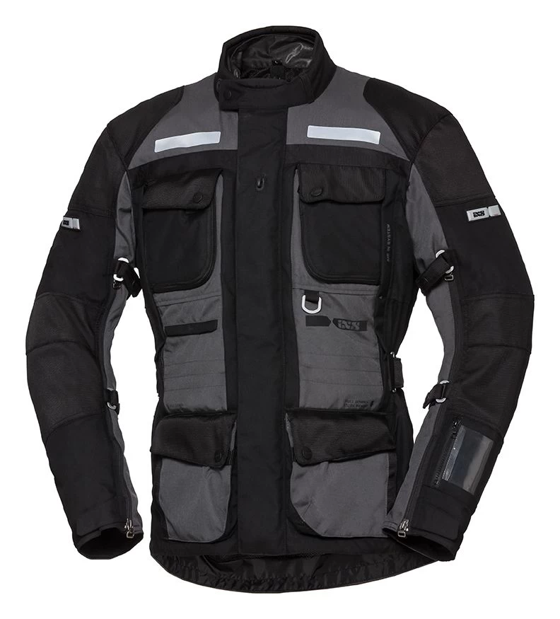 De IXS Montevideo ST is een textiele motorjas die gemaakt is van een combinatie tussen 500D Airdura en 630D Dynax. Deze extreem functionele motorjas heeft een uitneembaar, wind- en waterdicht solto-TEX membraan en een polyester mesh voering met waterkering. De Montevideo-ST heeft geen uitneembare thermovoering maar de jas kan uitgebreid worden met een thermo binnenjas. Deze is los in de winkel te koop.