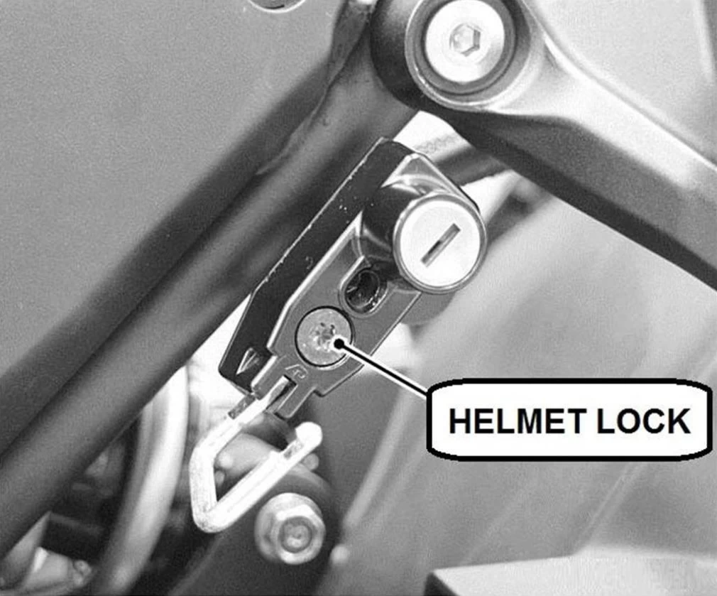 Helm slot opschroefbaar. Cilinderslot kan aangepast worden op de contactsleutel.