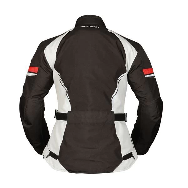De Violette motorjas van Modeka is uit te rusten met optionele rugbeschermer maar is standaard al heel veilig te noemen door de SAS-TEC schouder- en elleboogprotectie welke allemaal level 1 gecertificeerd zijn. Verder zijn er ventilatie ritsen voor verkoeling aangebracht en wanneer deze gesloten zijn deze water- en winddicht.