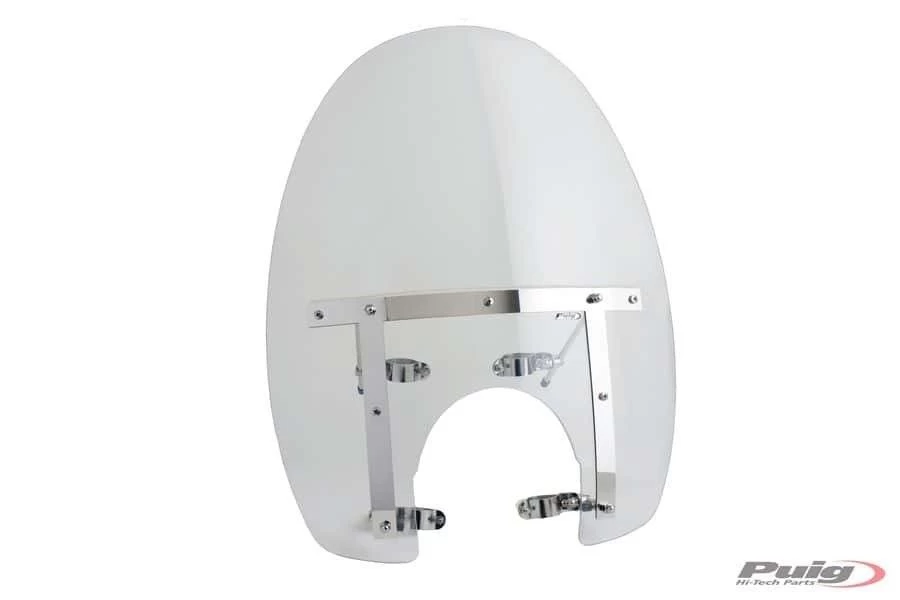 Het betreft een mooi windscherm met chromen strips en zorgt voor een betere windbescherming. Het windscherm wordt geleverd inclusief bevestigingsset. Totale hoogte 710mm, totale breedte 580mm, hoogte vanaf koplamp uitsnede 49cm. Kleur: transparant. Merk Puig. Past allleen op de Kawasaki VN1500/1600 Mean Streak en Suzuki VZ800/1600 Marauder