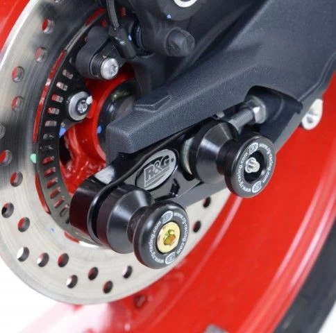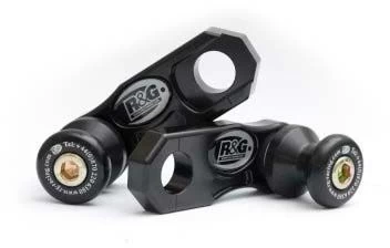 Wanneer er geen schroefdraad in de achterbrug is om een bobbin te monteren kan de R&G “Offset Cotton Reels” gebruikt worden. Zo kan er via de kettingspanner/achteras toch een bobbin op de motor gemonteerd worden en kan de motor dus met een paddockstand veilig en stevig gestald worden. Ook beschermen de bobbins de achterbrug bij een val.