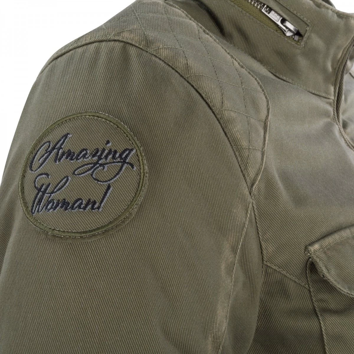 Voor het exterieur van de Lady Maya is er gebruikt van Serica, een wattig textiel met denim look en bovendien zeer slijtvast en soepel. Hierdoor biedt de jas een chique uitstraling naast duurzaam te zijn en veel bescherming te kunnen bieden.